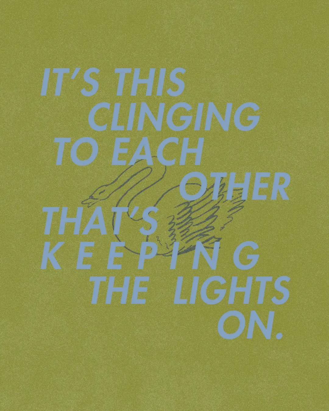 It’s that clinging to each other that’s keeping the lights on. And god, I’m worried that if we don’t do it now, the lights could go out.