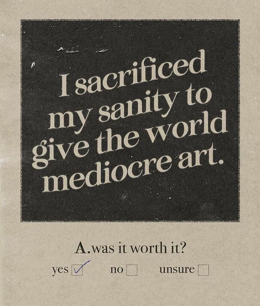 And maybe the people who are still making things—writing jokes, sharing outfits, painting in their tiny studio apartments—are not being frivolous. If they are holding both the horrors and the craft, they’re revolutionaries.